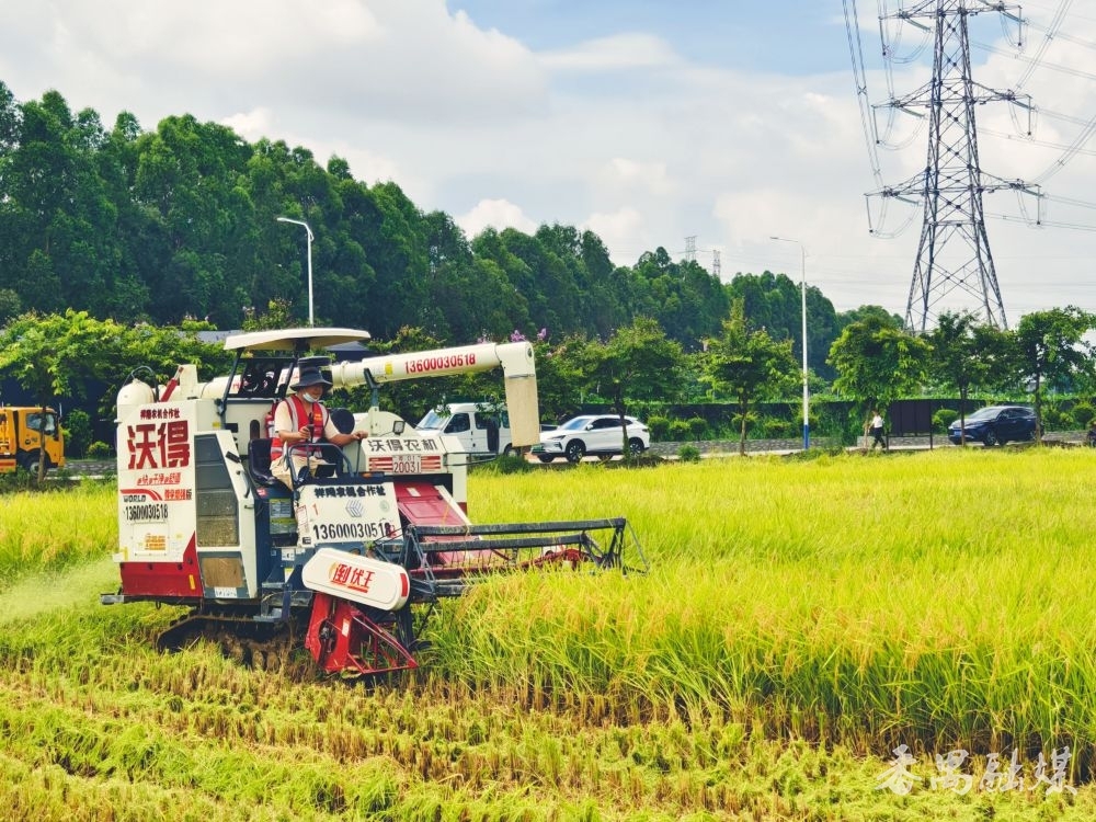 机械穿梭绘就田园好 “丰” 景 番禺区石基供销社水稻种植基地迎丰收